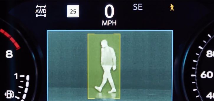 Available Night Vision can help you see beyond your headlamps by displaying a thermal heat image that highlights and alerts you to detected pedestrians or large animals directly ahead of you.